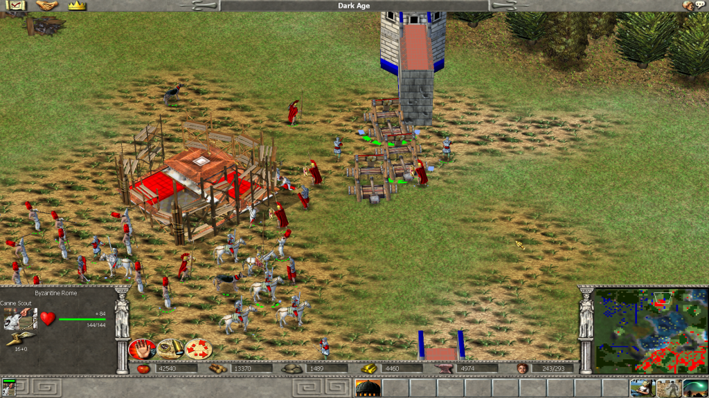 In Empire Earth, there are multiple civilizations to choose from. One of those civilizations is called Byzantine Rome. This is a combination of the two epochs of the Roman Empire, both pagan and Christian. As a result, the game allows the player to utilize their strengths, especially in a game where it is quick to build walls and gates are very durable.