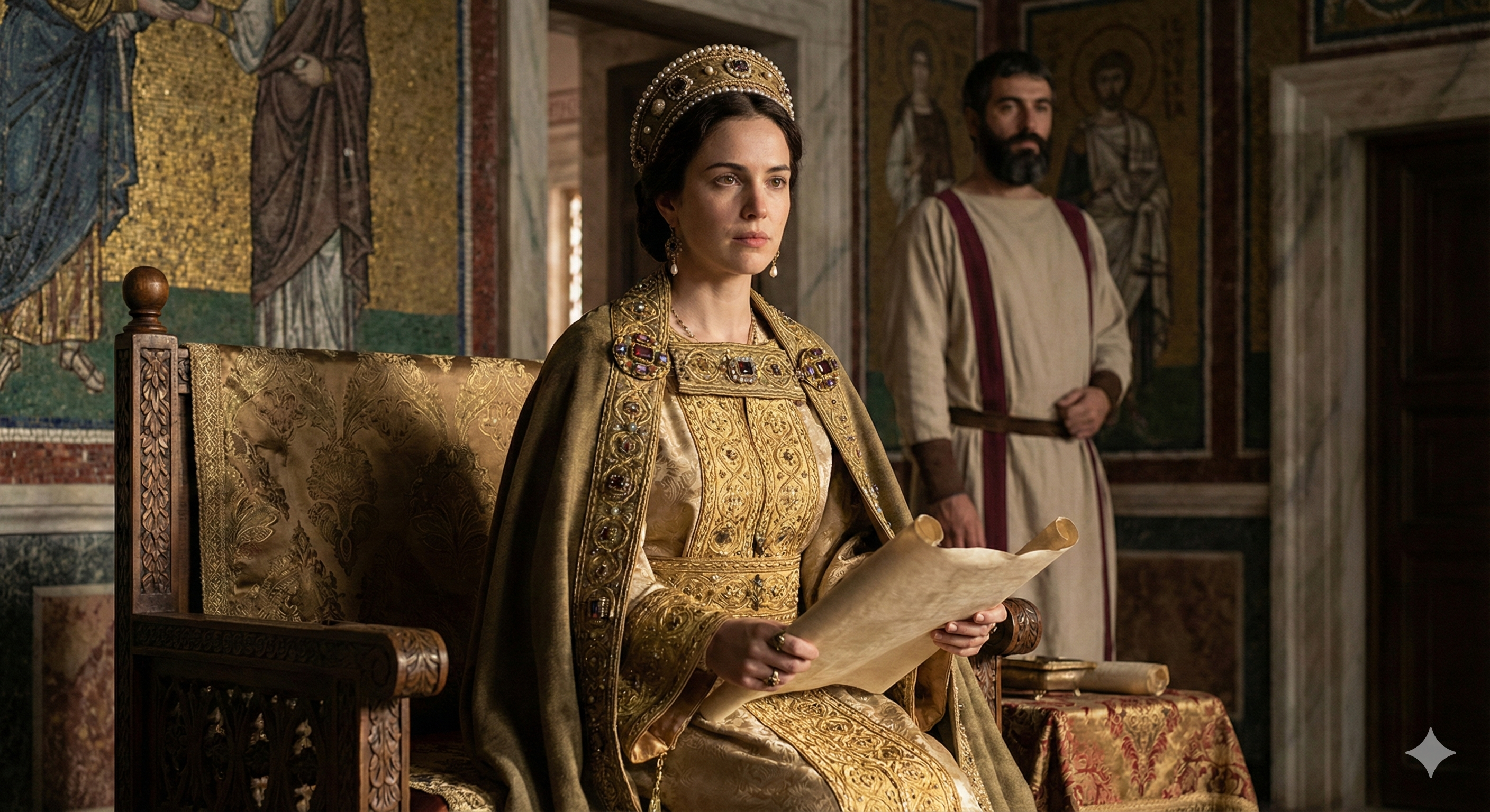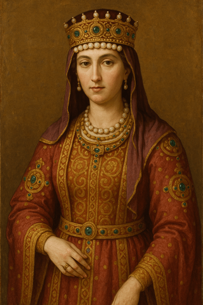 The prompt that I used here was: Create image of an Upper class Byzantine woman who is wife of a senator in 1060 Era.
